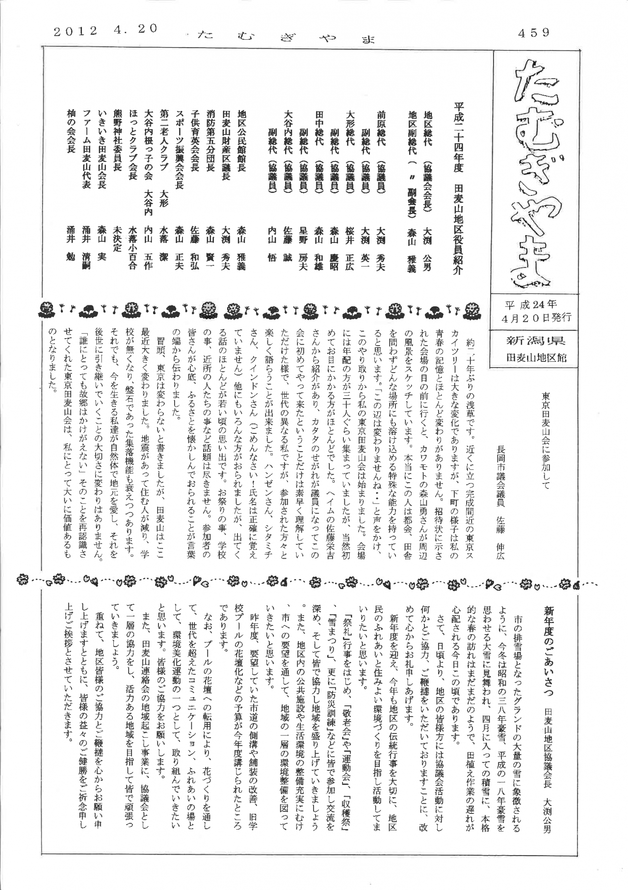 新年度のごあいさつ 田麦山地区協議会長 大淵公男