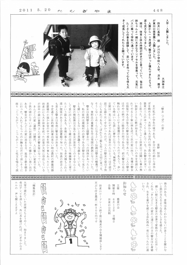 田麦山地区・公民館年間事業 どうでもいいことですが・・・・ 入学・入園しました 瞽女(ごぜ)の宿 星野恒治 お知らせ